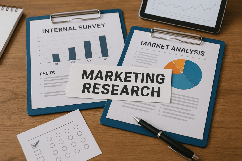マーケティングリサーチサービスでは、内部と外部のリサーチを行います。